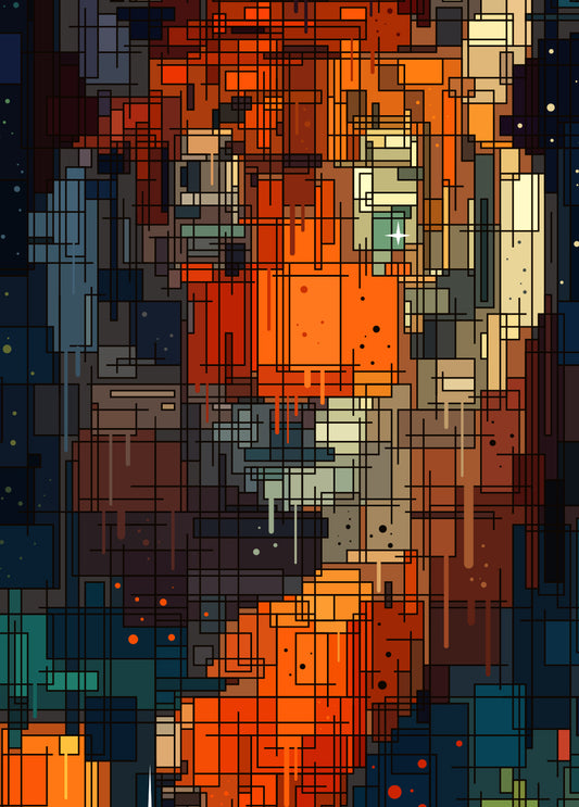 Ma pratique évolue aujourd’hui vers une écriture plus expérimentale, des compositions construites sur des fonds de rectangles colorés imbriqués, où la ligne dialogue de manière modulaire, à la croisée de la figuration et de l’abstraction. Les images s’y révèlent progressivement : lisibles à distance, plus libres et fragmentées de près, elles invitent à une lecture sensible et personnelle.