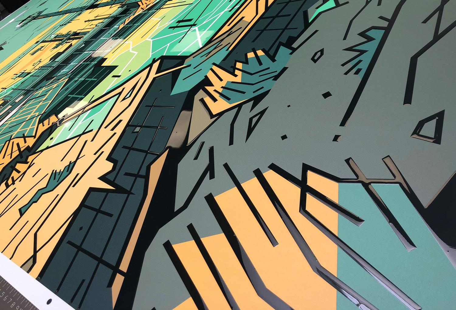 Mon travail s’inscrit dans la continuité des arts graphiques et de l’illustration, avec une approche résolument contemporaine. J’y mêle formes géométriques angulaires, contrastes marqués et couleurs franches, dans une recherche d’équilibre visuel.