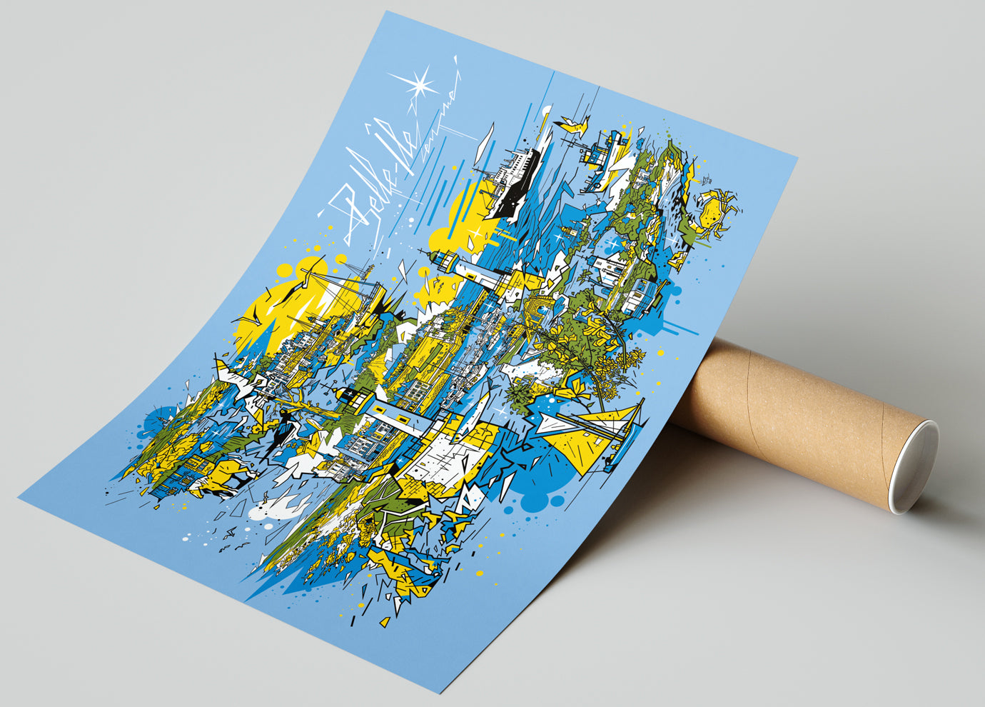 Une création qui traduit l’esprit de Belle-Île par l’essentiel, entre graphisme et évocation.
